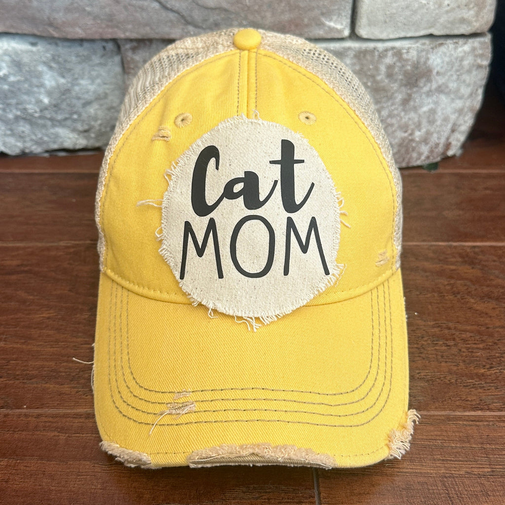 Keywords: cat mom hat, cat lover gift, pet mom hat, animal lover hat, snapback hat, vintage-style hat, boutique hats, women’s graphic hat, pet-themed accessories, lifestyle hats